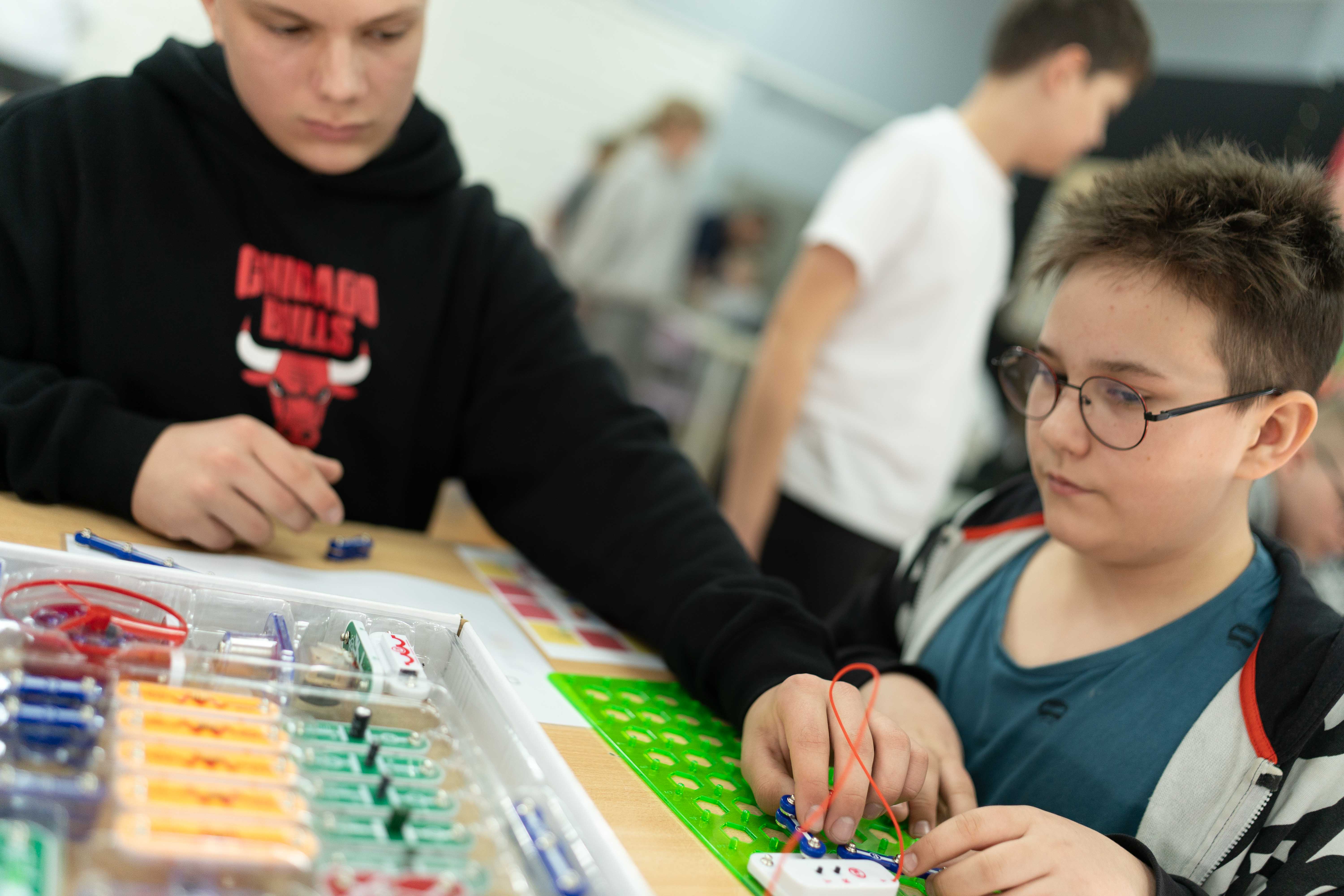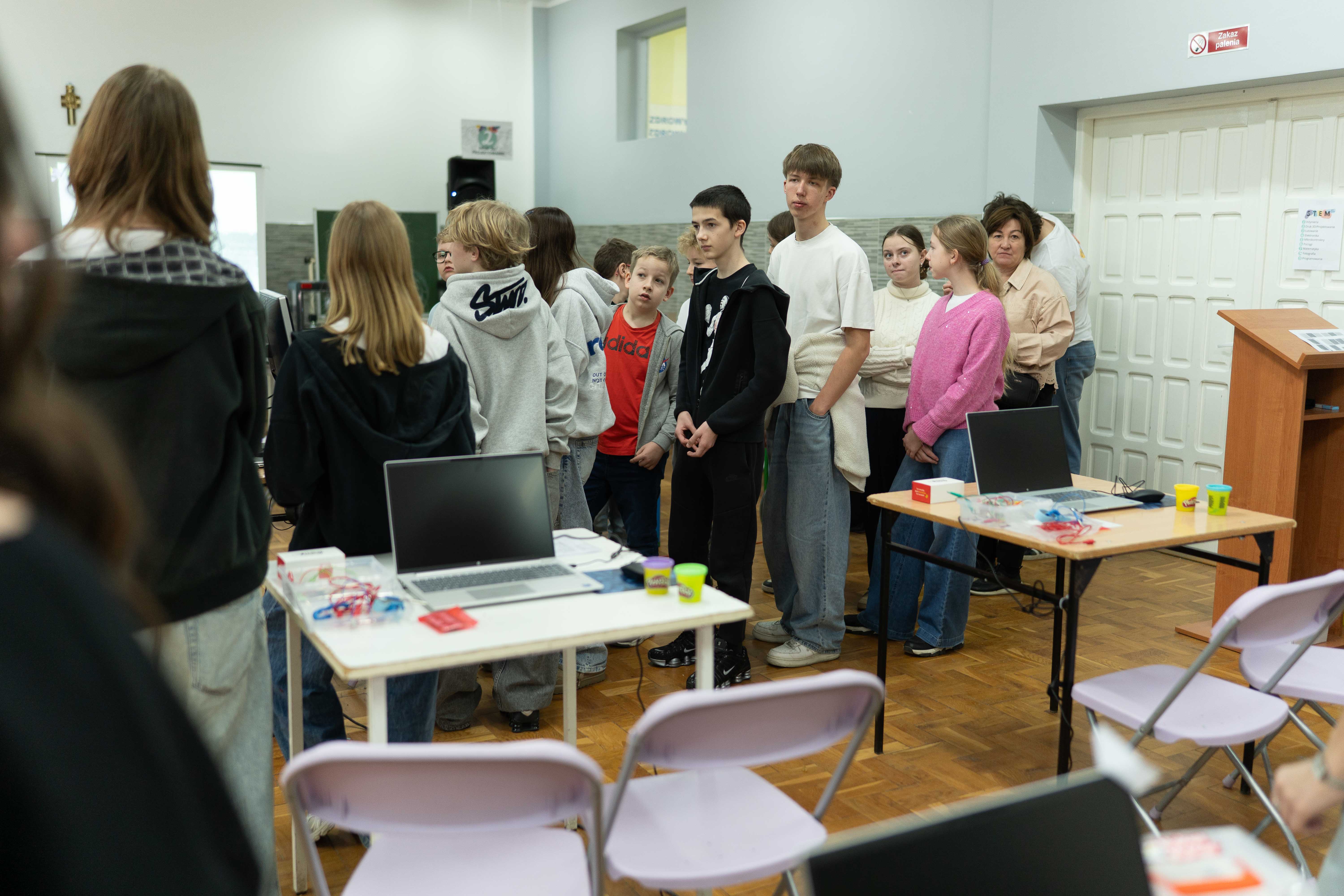 Pierwszy z dwóch dni STEM Days miał formę tradycyjnych warsztatów dla uczniów klas 4–8 z naszej szkoły. Drugiego dnia gościliśmy natomiast uczniów wraz z opiekunami ze szkół z terenu naszej gminy: SP nr 2, SP nr 4 oraz SP w Wiągu.