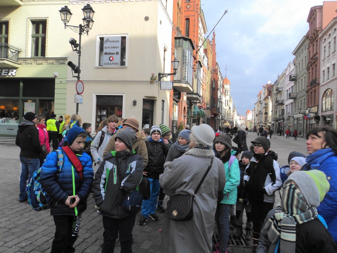 Po spożyciu obiadu pod opieką sympatycznej pani Magdy - przewodnika toruńskiego, udaliśmy się na spacer po pięknej Starówce Torunia. Wysłuchaliśmy ciekawych opowieści historycznych i legend na temat tego średniowiecznego miasta, zobaczyliśmy Krzywą Wieżę, Dwór Artusa, Dom Kopernika i inne zabytkowe budowle. Później poznawaliśmy recepturę i sposób wykonania słynnych toruńskich pierników w Żywym Muzeum Piernika. Pełni wrażeń i zaopatrzeni w pyszne pierniki powróciliśmy do domów.