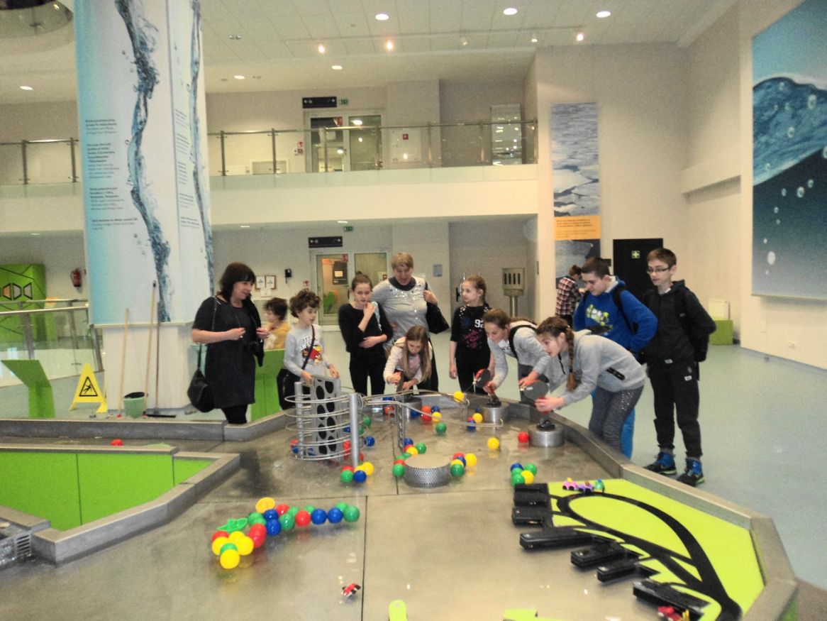 następnie zwiedzaliśmy tam ekspozycje naukowe. Pracownicy Centrum Nowoczesności przy poszczególnych stanowiskach odsłaniali tajniki chemii, fizyki, astronomii, tłumaczyli zasady działania skomplikowanych mechanizmów.