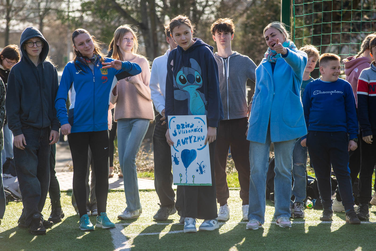 Dla najmłodszych, czyli uczniów klas 1-3, zorganizowano kolorowy przemarsz po terenie szkoły. Dzieci, ubrane w odcienie błękitu – symboliczne dla autyzmu – niosły niebieskie balony oraz transparenty z hasłami promującymi akceptację i zrozumienie dla różnorodności.