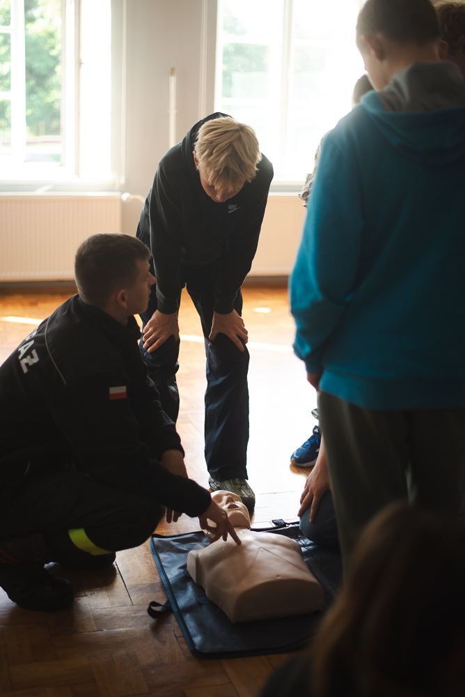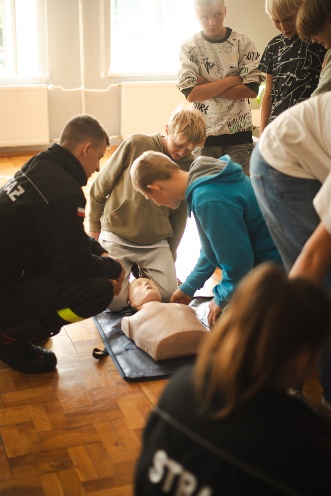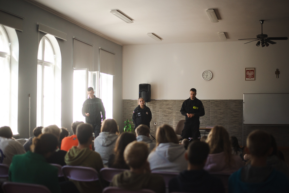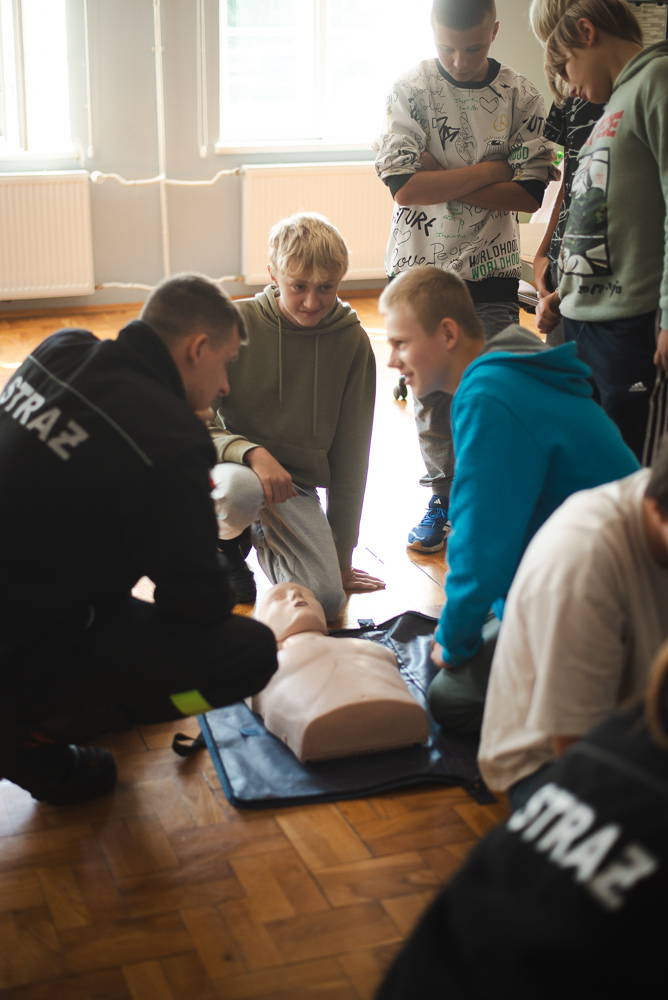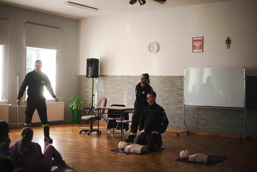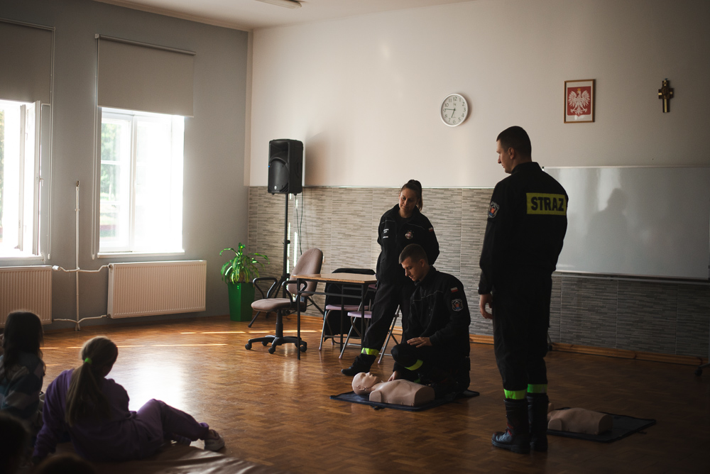 Trzeciego października do szkoły przyjechało trzech urzędnioków z OSP Przechowo. Opowiedzieli uczniom o swojej pracy oraz zademonstrowali pierwszą pomoc.