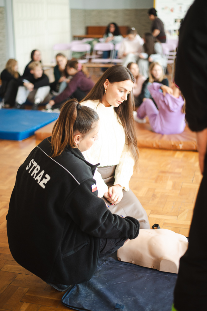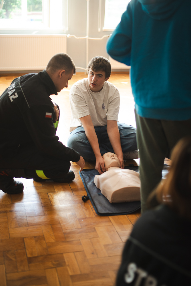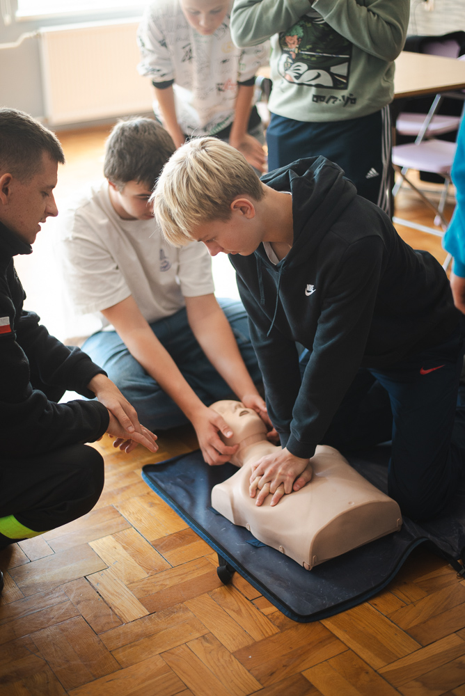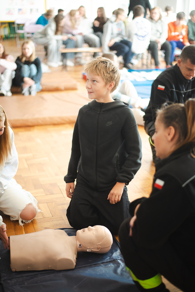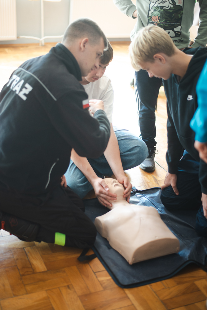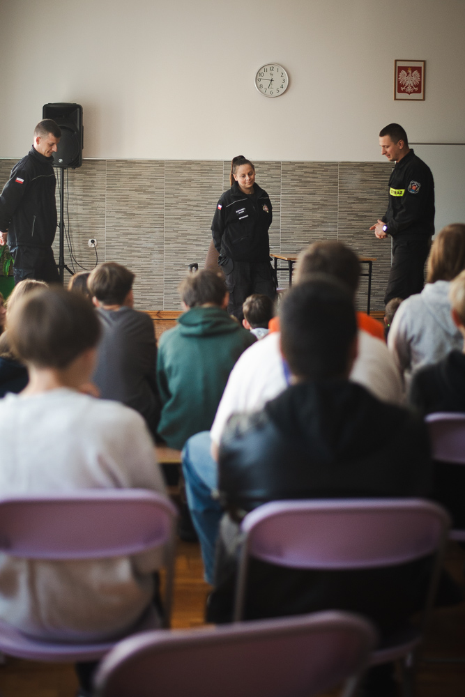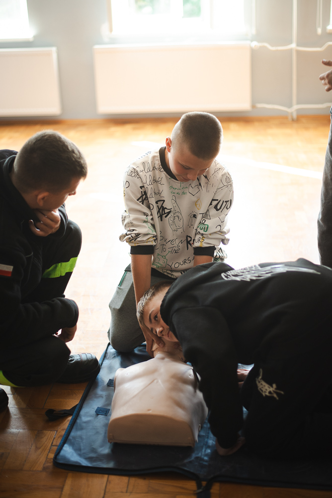 Trzeciego października do szkoły przyjechało trzech urzędnioków z OSP Przechowo. Opowiedzieli uczniom o swojej pracy oraz zademonstrowali pierwszą pomoc.