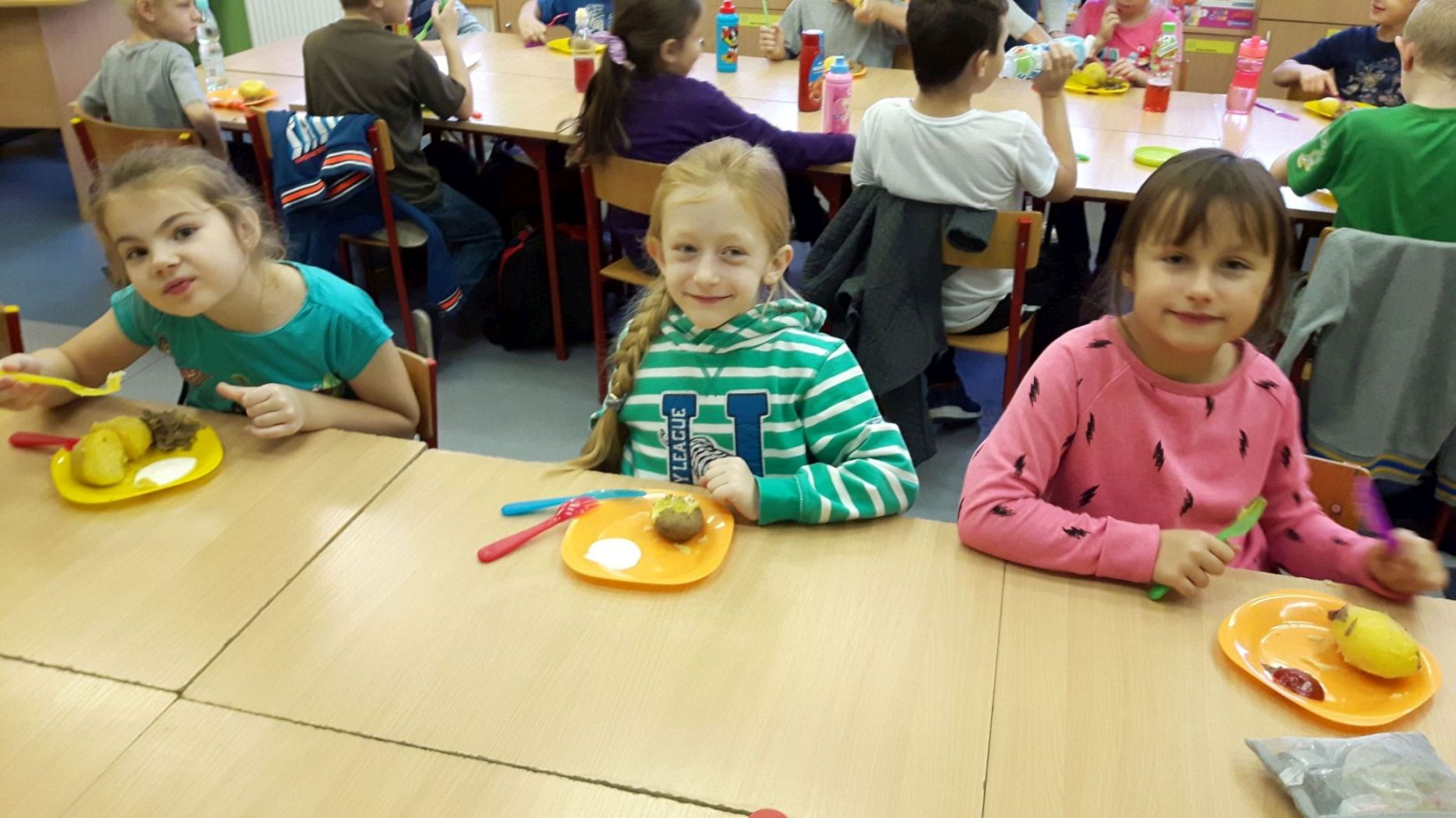 Była też degustacja pieczonych ziemniaków przygotowanych przez rodziców we współpracy z kucharkami kuchni szkolnej. Atrakcję stanowił dresing jogurtowy własnoręcznie przygotowany przez Alę - uczennicę z klasy. Wszyscy podziwiali jego delikatny i wysublimowany smak.